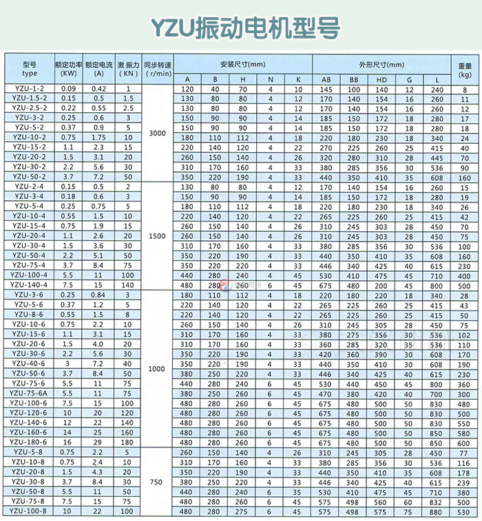 YZU振動電機(jī)型號說明