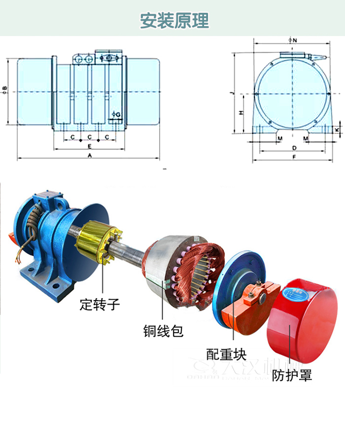 4、受電源波動的影響小,電磁式激振器會由于電壓變化而引起激振力發(fā)生大的變化,但振動電機(jī)中,這種變化就非常小。
